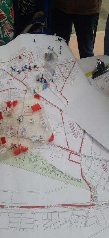 Los estudiantes se ubicaron en las Ferias libres de Buzeta y Portal dialogando con las vecinas y vecinos. La actividad diagnóstica consistió en recopilar las percepciones, hechos y elementos identificados por los habitantes de Cerrillos en el mapa de la comuna. Con esta información, entre otras, se actualizara el Plan Comunal de la comuna de Cerrillos teniendo en consideración la voz